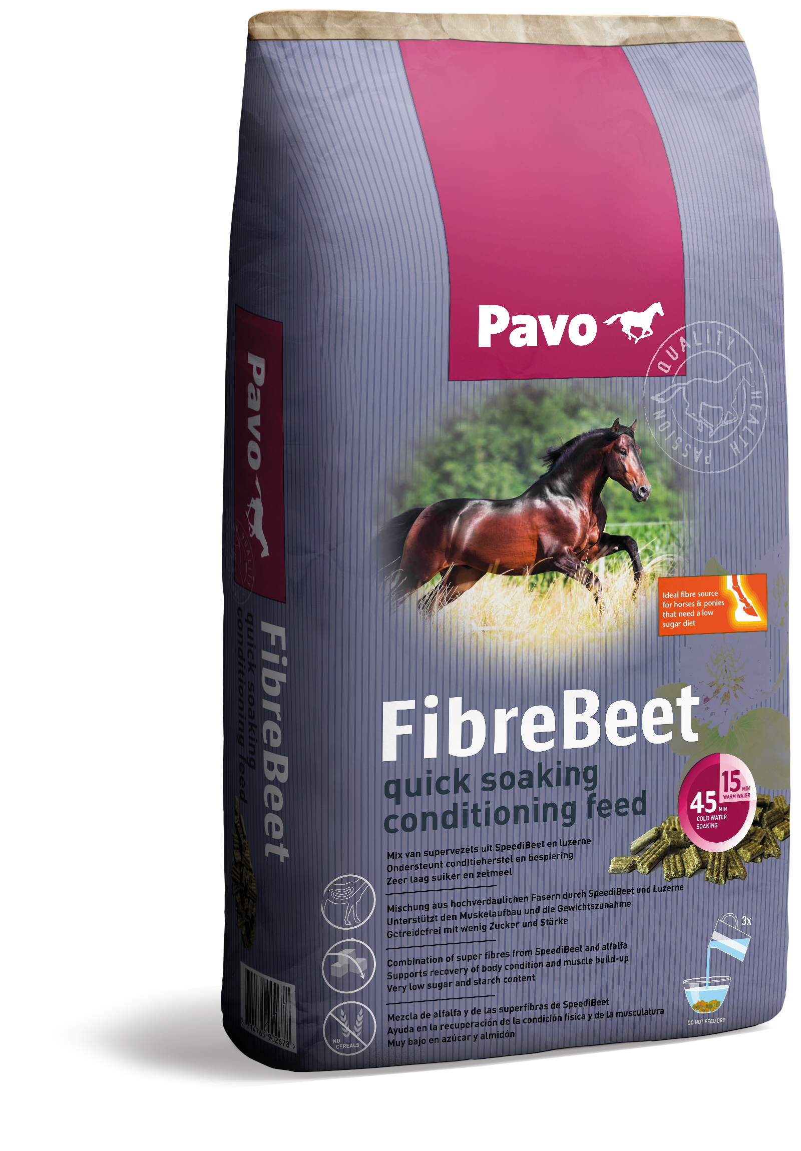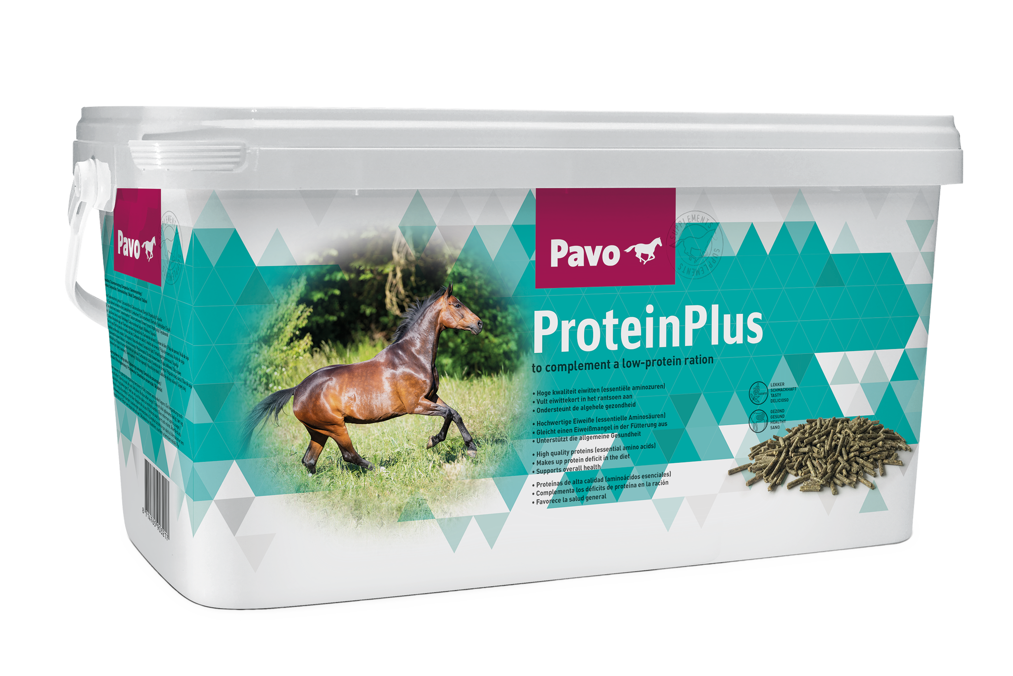 Reicht das Protein aus dem Raufutter nicht aus, kann es sinnvoll sein, zusätzlich zum Mineralfutter extra Protein zuzufüttern. Dafür eignet sich Pavo ProteinPlus, das ausschließlich hochwertiges Protein liefert, ohne unnötige Energie. Wenn dein Pferd zusätzlich mehr Energie benötigt, kann auch ein Raufutterprodukt wie Pavo FibreBeet ergänzt werden.