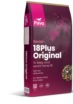Da Baukje noch aktiv gearbeitet wird, braucht sie außerdem ein Kraftfutter, das zu den Bedürfnissen älterer Pferde passt. Sie benötigt mehr hochwertiges Protein sowie angepasste Mineralstoffe. Dafür empfehlen wir Pavo 18Plus Original.