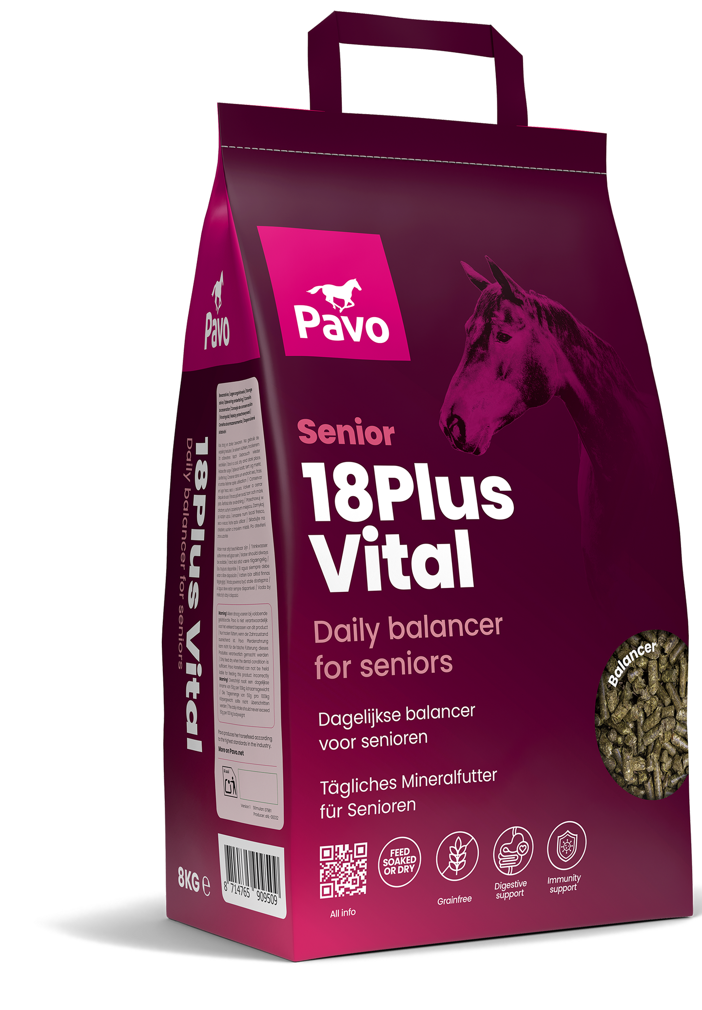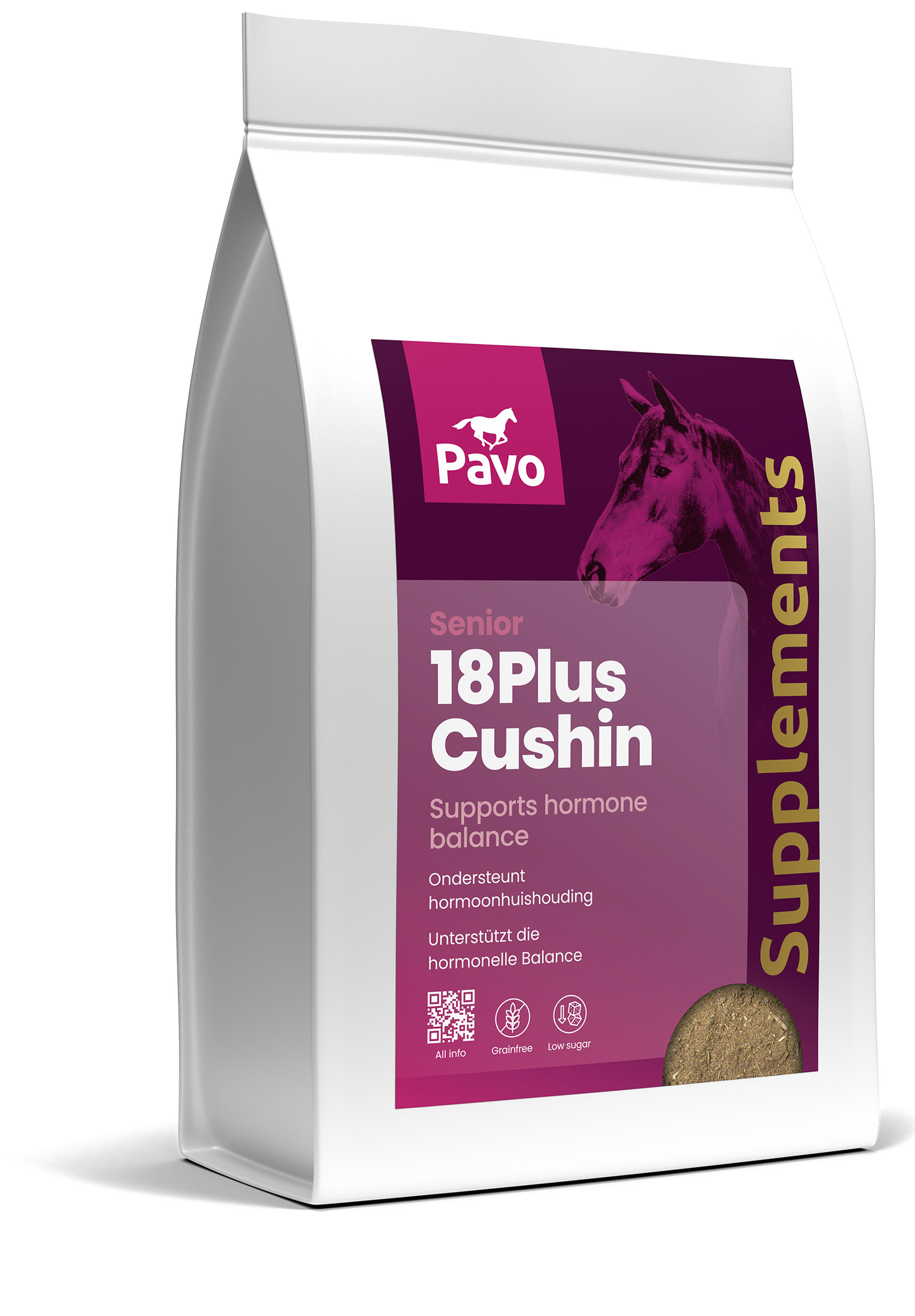 Bei der Wahl des Kraftfutters solltest Du auf zuckerarme Produkte achten, z. B. Pavo 18Plus Sensitive oder ein Mineralfutter wie 18Plus Vital. Zusätzlich kannst du dein PPID-Pferd mit Pavo 18Plus Cushin unterstützen. Dieses Ergänzungsfutter basiert auf verschiedenen Kräutern und Pflanzenstoffen, die das hormonelle Gleichgewicht und das Immunsystem deines Seniors fördern.
