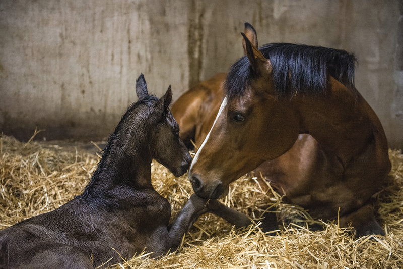 Eine Stute, die ihr neugeborenes Fohlen ableckt, ist nicht nur sehr niedlich anzusehen, sondern gleichzeitig auch von großer Bedeutung. Durch das Ablecken des Fells prägt sich deine Stute den Geruch, die Form und die Farbe ihres Fohlens ein. Außerdem prägt auch das Fohlen sich den Körpergeruch seiner Mutter ein. Dieser Geruch bleibt für beide ein Leben lang unvergessen. Selbst wenn sich Stute und Fohlen 20 Jahre lang nicht gesehen haben, würden sie sich anhand ihres Körpergeruchs immer wieder erkennen.